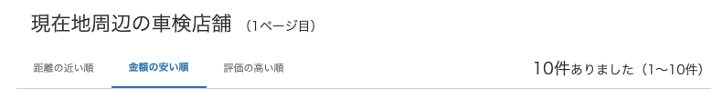 リスト上部の「金額の安い順」を選択することで、最も参考車検価格の安いお店がわかります。